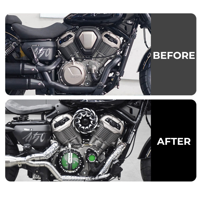 Élevez le caractère de votre moto avec ces filtres à air style turbine conçus spécifiquement pour les BENDA Napoleon 500 et BENDA Chinchilla 500. Pensés pour une admission plus fluide et un rendu esthétique saisissant, ils remplacent avantageusement les éléments d’origine en offrant un flux d’air plus direct et un design mécanique affirmé.